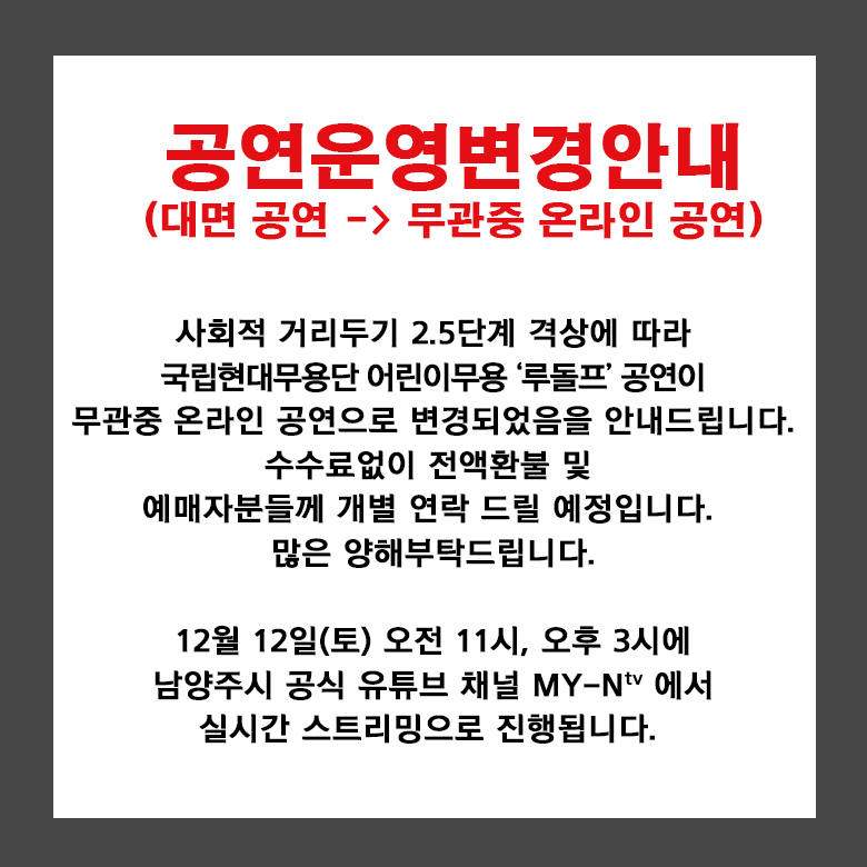【기획공연】[2020 문예회관과 함께하는 방방곡곡 문화공감] 국립현대무용단 <어린이무용 루돌프>