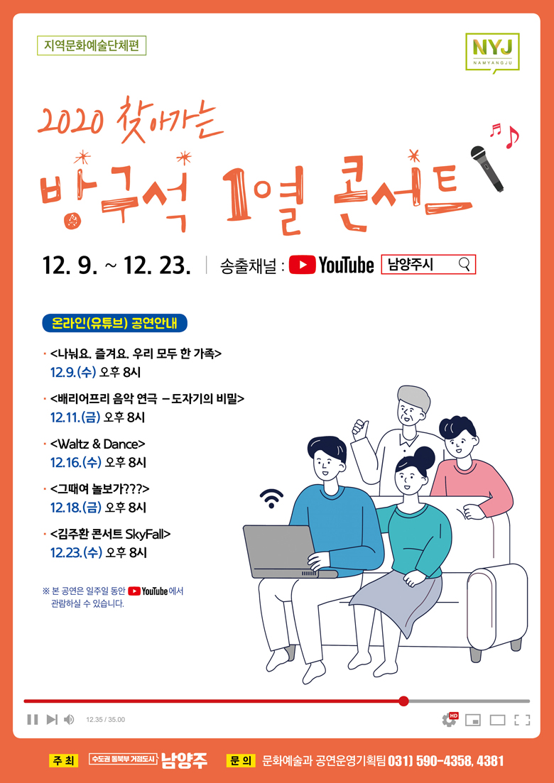※ 본 공연은 일주일동안 남양주시 공식 유튜브 채널 에서 관람하실 수 있습니다.