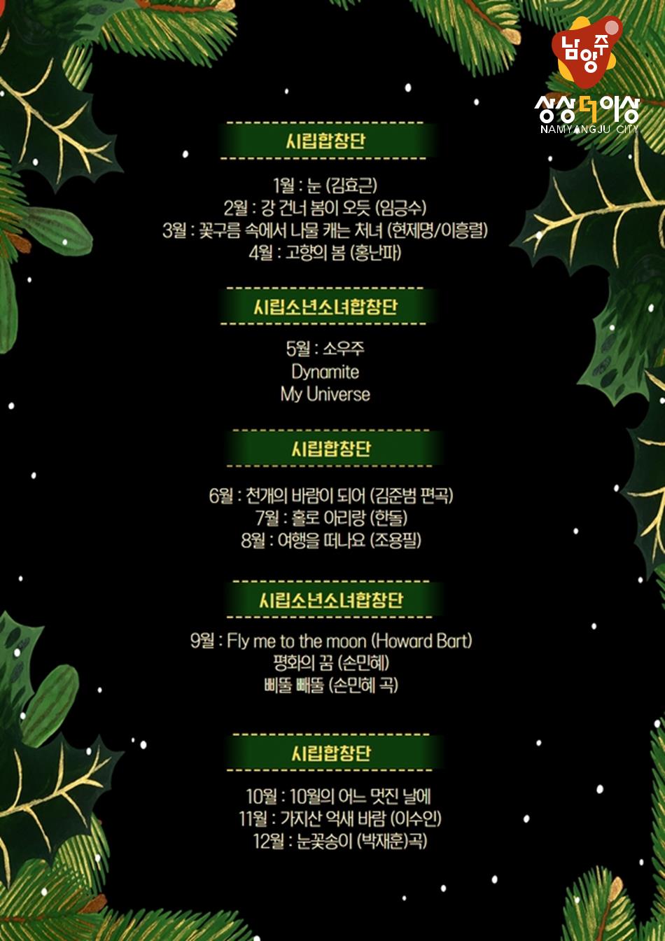 - 시립합창단(031-551-1108), 문화예술과(031-590-2475)