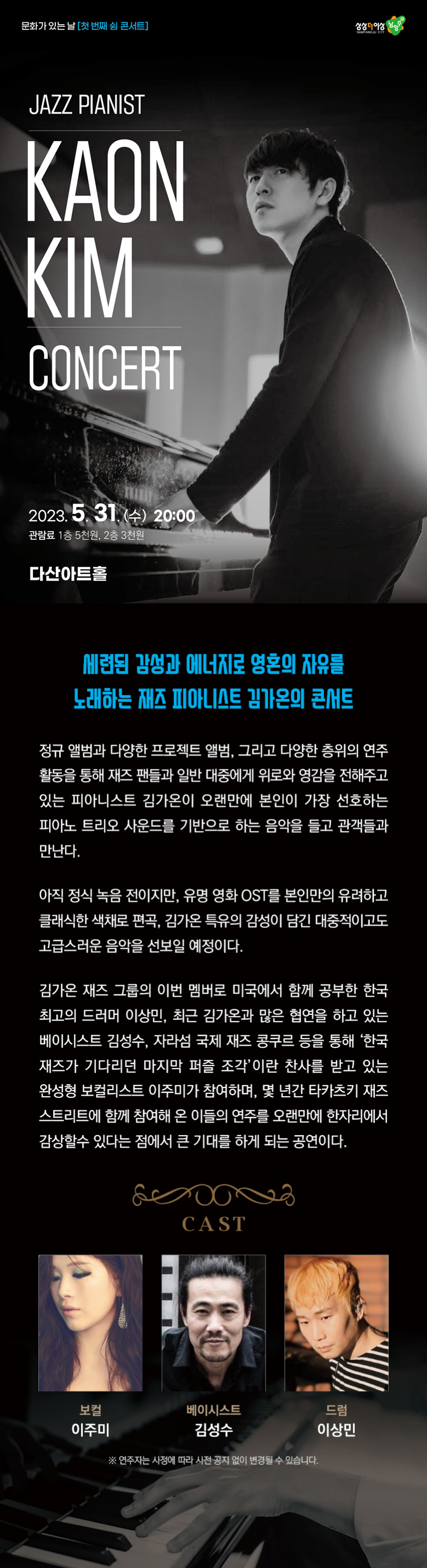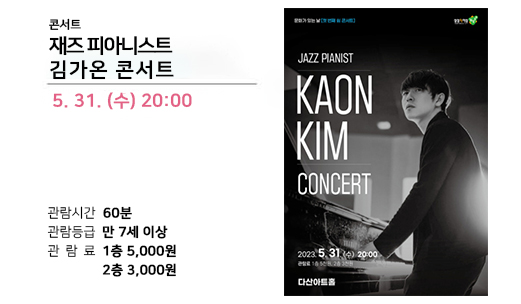 【기획공연】[콘서트] 재즈 피아니스트 김가온 콘서트
