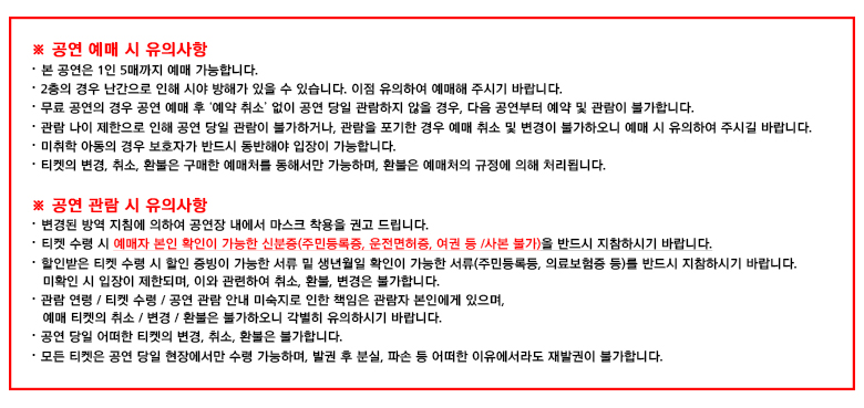 · 예매 공연 1시간 전, 취소 및 변경은 공연 1일 전 오후