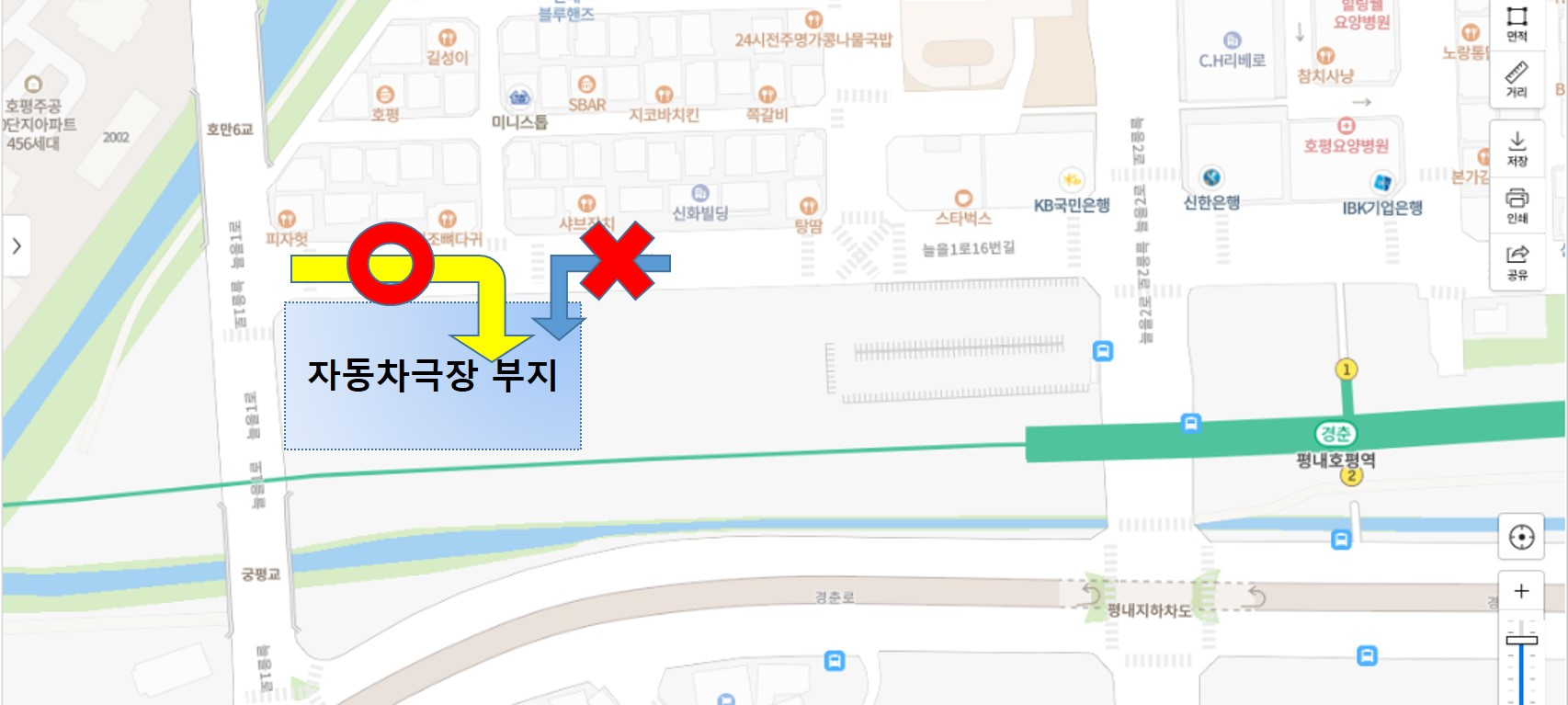 - 자동차극장을 이용하시는 분은 이마트 방향에서 입차가 불가하며, 반대쪽(우회전)차선에서만 입차가 가능 합니다.