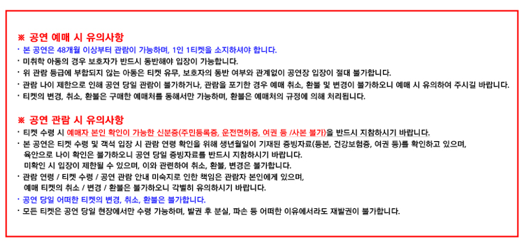 예매 진행 시 이 점 유의하여 주시기 바랍니다.