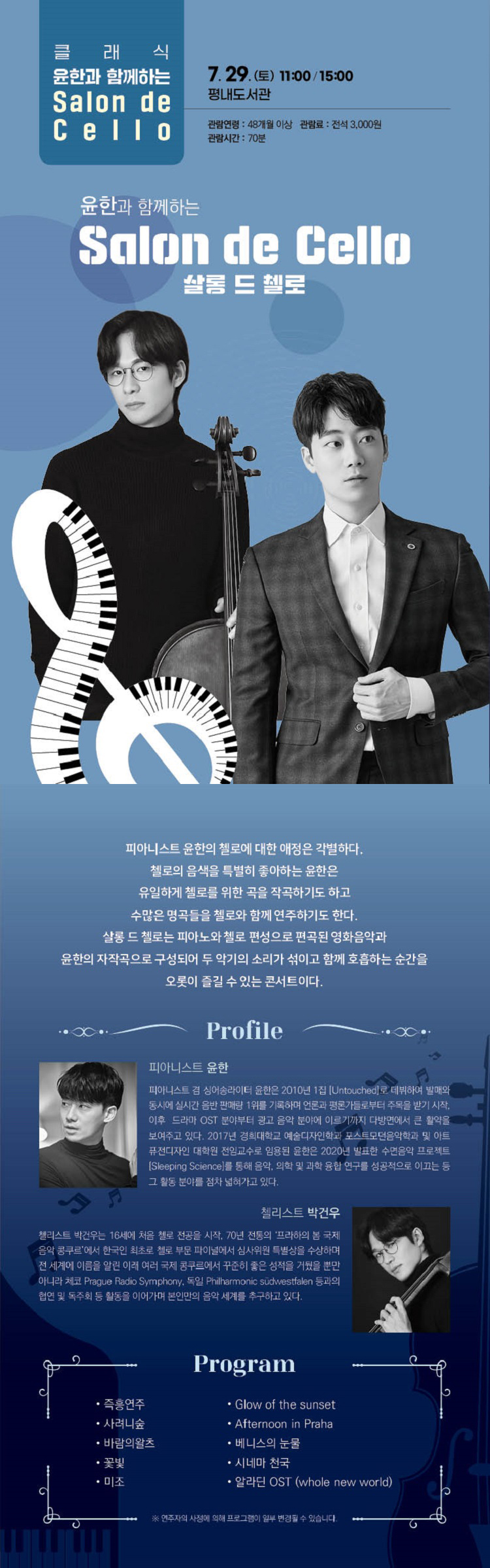 · 공연일정: 7월 29일 토요일 오전 11시, 오후 3시