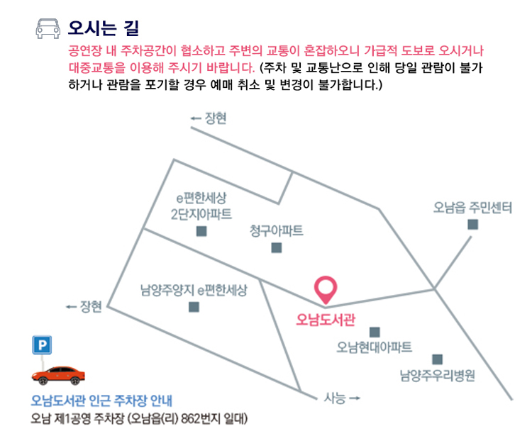 * 주차공간이 부족하여 공연 당일 주차가 어려울 수 있으므로