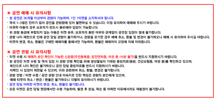 · 관람연령: 36개월 이상 관람가능(생년월일 증빙자료 지참 필수)