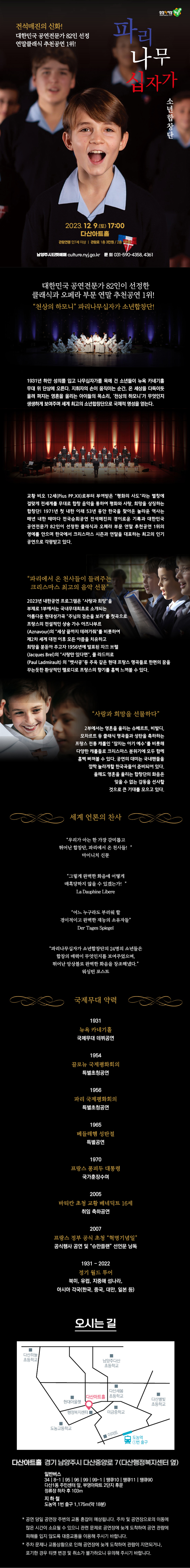 【기획공연】[클래식] 파리나무십자가 소년합창단 내한공연