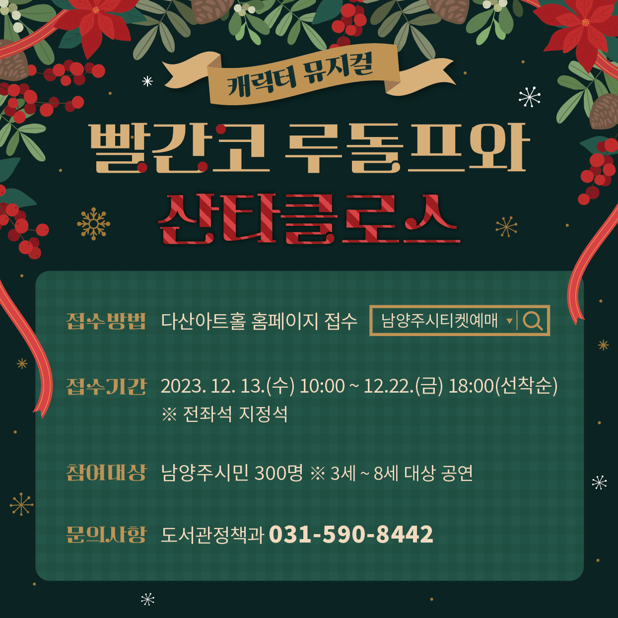아이들과 가족들이 함께 볼 수 있는 "캐릭터 뮤지컬 「빨간코 루돌프와 산타클로스」 공연"을 준비했습니다!