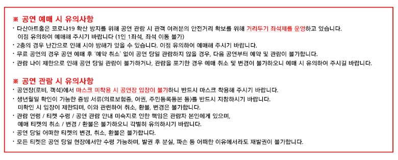 입장 시 문진표 작성 및 발열 체크로 인해, 티켓 수령이 다소 지연될 수 있습니다.
