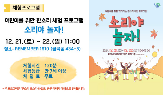 【기획공연】[판소리 체험 프로그램] 소리야 놀자