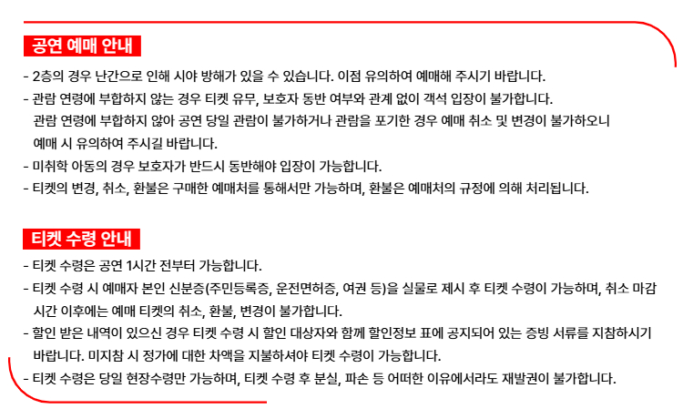 · 관람연령: 만 7세(2017년생) 이상 관람가능(생년월일 증빙자료 지참 필수)