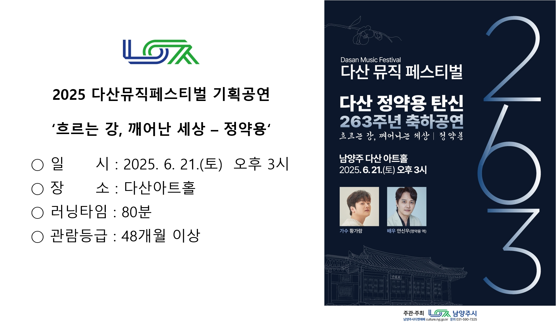 ◇ 탄생 263주년을 맞이한 다산 정약용 선생의 고향, 남양주에서 기획한 문화예술공연