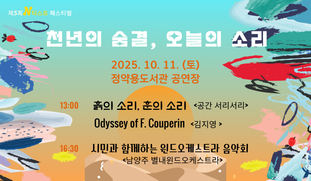 공간 서리서리의 '흙의 소리, 훈의 소리'와 오보이스트 김지영의 'Odyssey of F. Couperin(오디세이 오브 쿠프랭)' 공연이 전하는 따뜻한 소리의 울림으로 여러분을 초대합니다.