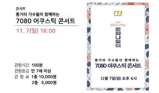 【기획공연】[콘서트] 통기타 가수들이 함께하는 '7080 어쿠스틱 콘서트'