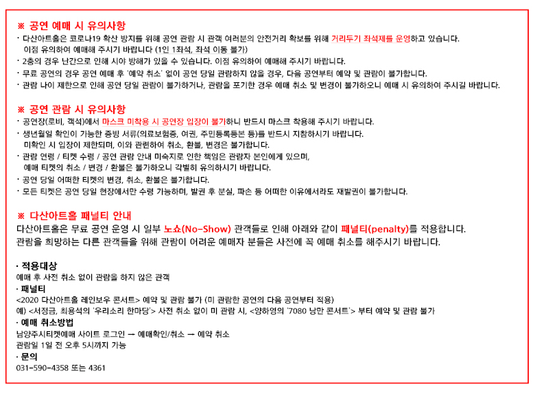※ 코로나19 관련 정부지침에 따라 실내 공연 진행 불가 시