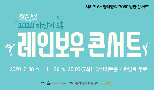 【기획공연】<2020 다산아트홀 레인보우 콘서트> - 양하영의 '7080 낭만 콘서트'