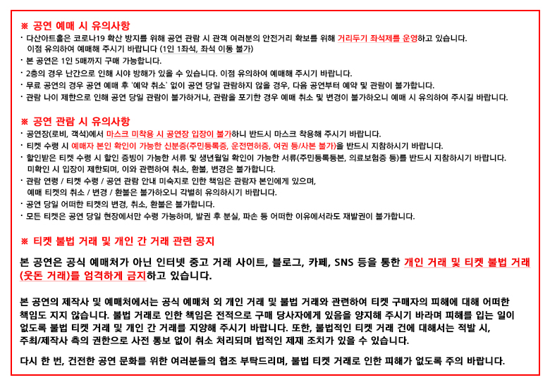 입장 시 문진표 작성 및 발열 체크로 인해, 티켓 수령이 다소 지연될 수 있습니다.