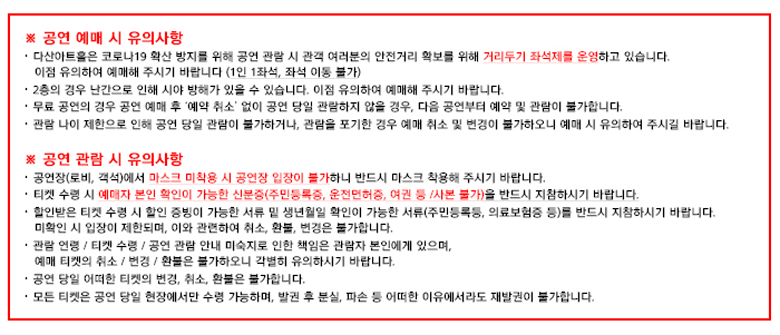 입장 시 문진표 작성 및 발열 체크로 인해, 티켓 수령이 다소 지연될 수 있습니다.