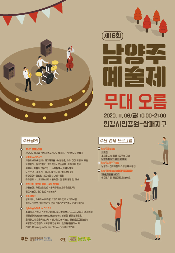 ●제16회남양주 예술제는 남양주시의 전문 예술인 단체인 사)한국예총 남양주지회의 8개 협회 회원들이 준비한 행사입니다.