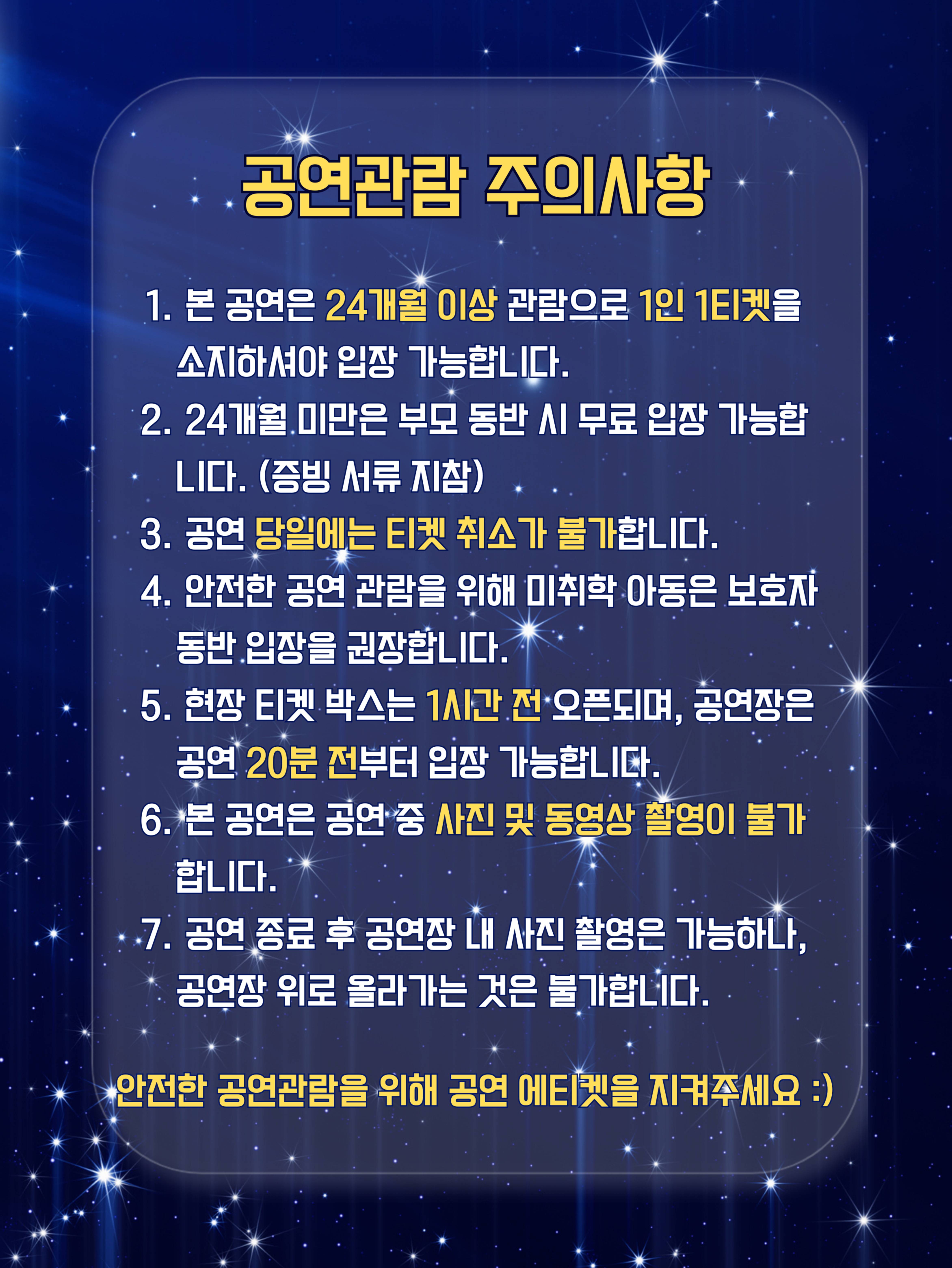 - 관람연령: 24개월 이상 관람가능 (생년월일 증빙자료 지참)