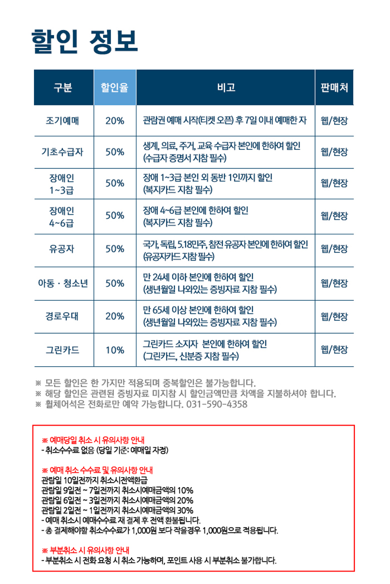 · 예매는 공연 시간 1시간 전까지, 취소 및 변경은 공연 1일