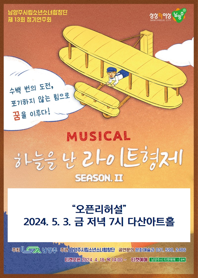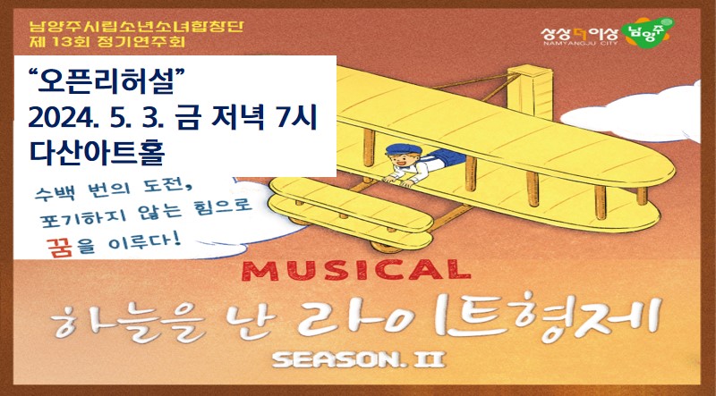 【문화예술】"오픈리허설" 남양주시립소년소녀합창단 뮤지컬 「하늘을 난 라이트형제」
