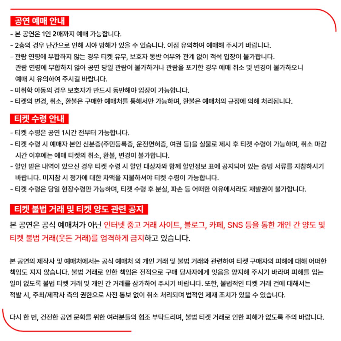 * 본 공연은 1인 2매까지 예매 가능합니다.