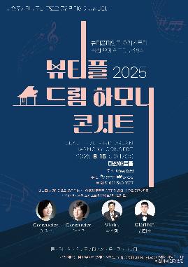 【문화예술】제2회 2025 뷰티플 드림하모니 콘서트 장소 다산아트홀 기간 2025년 8월 15일 ~ 2025년 8월 15일 공연시간 2025. 8. 15.(금) 17:00 입장권 가격 무료 관람등급 전연령가능 문의 031-560-1537 제2회 2025 뷰티플 드림하모니 콘서트2025. 8. 15.(금) 17:00 / 전석무료 문의 031-560-1537 2025 뷰티플 드림하모니 콘서트 홍보포스터.jpg [ Size : 1019.2KB, Down : 1,464 ] 미리보기 다운로드 목록보기