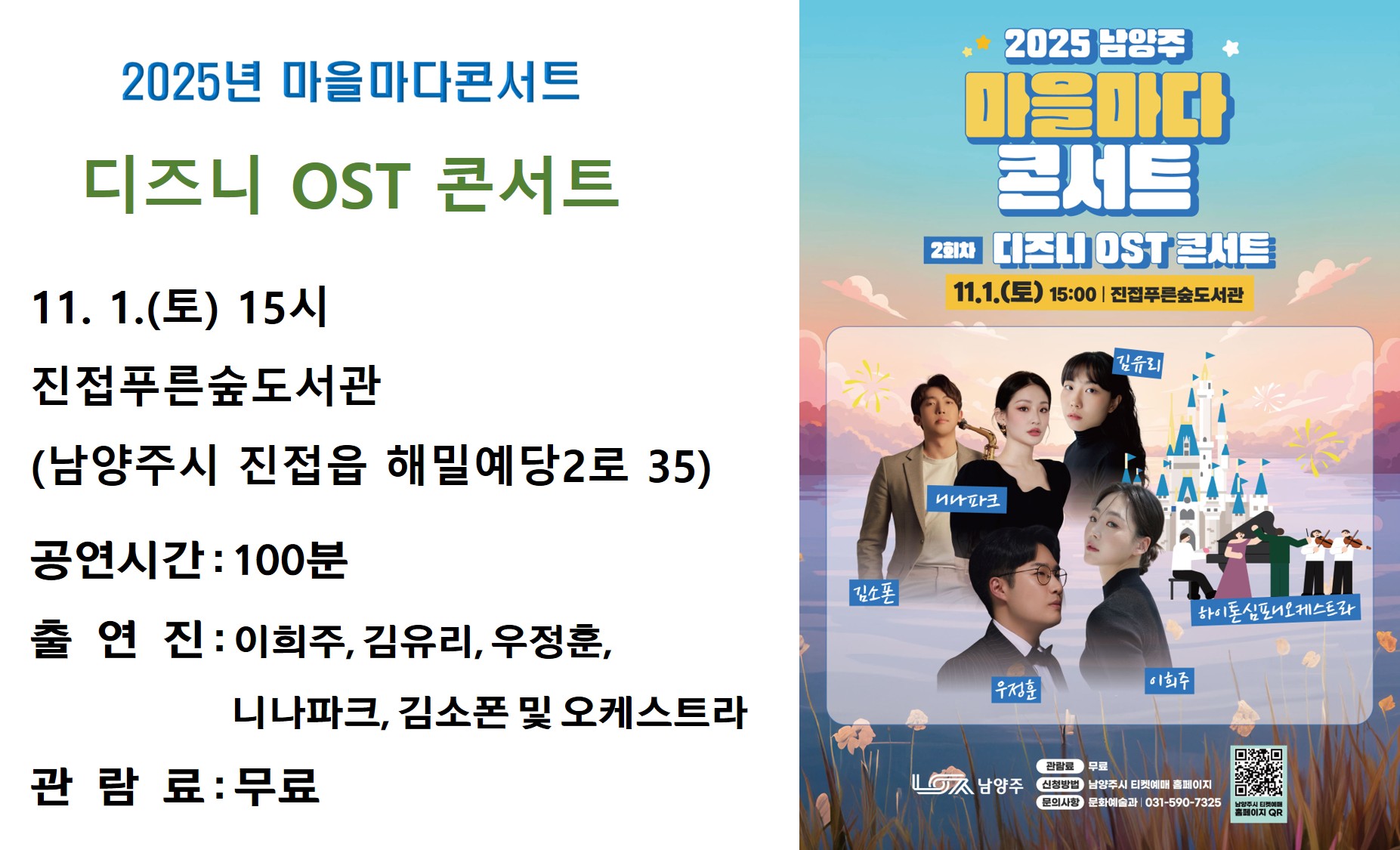 2025년 마을마다 콘서트 <디즈니 OST콘서트> 보러 오세요!