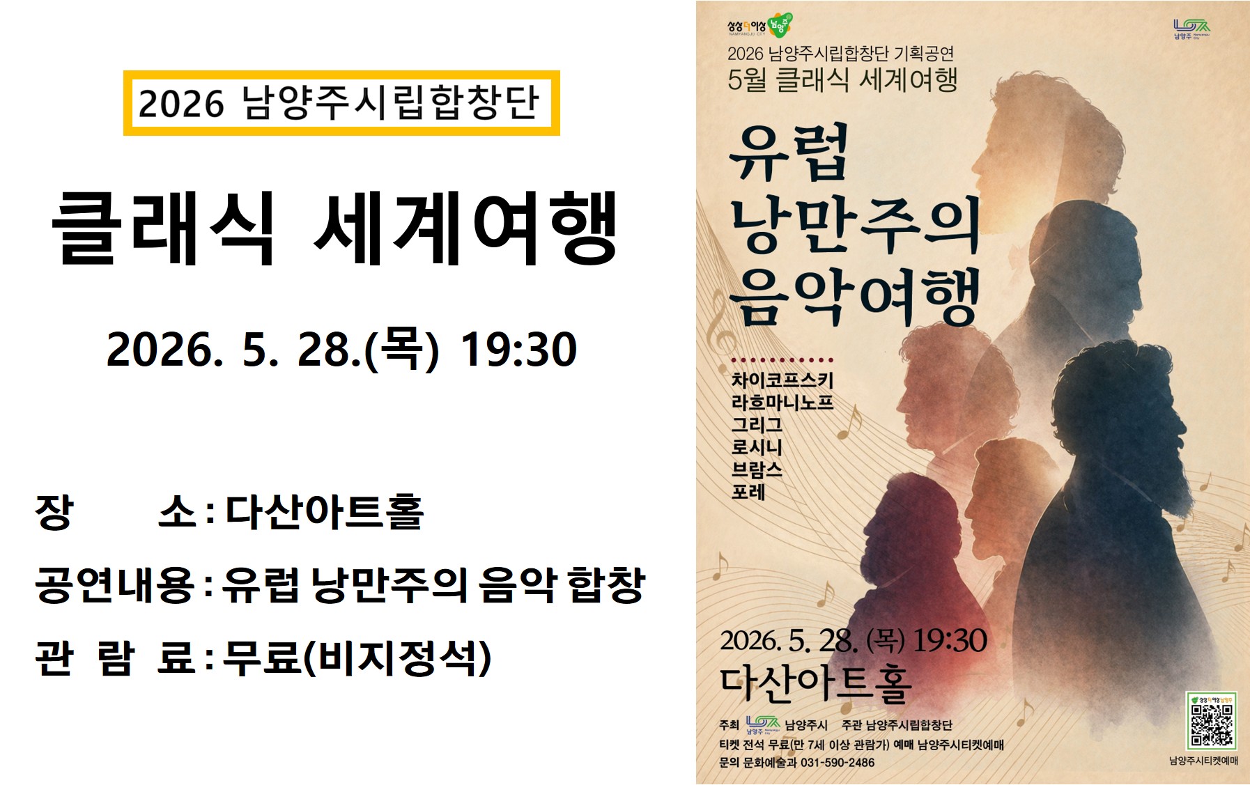 * 공연일시(장소): 2026. 5. 28.(목) 19:30 (다산아트홀)