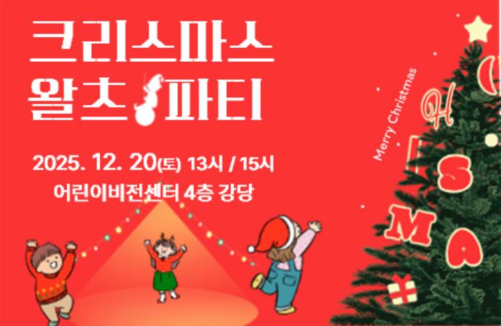 일정 검색 유형선택 전체보기 전체보기 기획공연 대관공연 문화예술 날짜 : 검색하기 이전월 2025년 12월 다음월 공연/문화예술 일정 달력(2025년 12월) : 일, 월, 화, 수, 목, 금, 토요일의 일정 SUN MON TUE WED THU FRI SAT 1 2 3 4 5 기획공연 6 7 8 9 문화예술 10 11 12 13 기획공연 문화예술 14 15 16 17 18 문화예술 19 20 기획공연 대관공연 21 기획공연 22 23 24 25 26 27 28 29 30 31 2025년 12월 20일 문화일정 대관공연 [유아 가족 참여프로그램] 크리스마스 왈츠 파티 장소 : 어린이비전센터 4층 강당 기간 : 25-12-20 관람등급 : 5~7세 유아(보호자 1명 필수 참여) 기획공연 [판소리] 두 제비 이야기 장소 : 다산아트홀 기간 : 25-12-20 ~ 25-12-21 관람등급 : 48개월 이상 관람가능(생년월일 증빙자료 지참 필수)